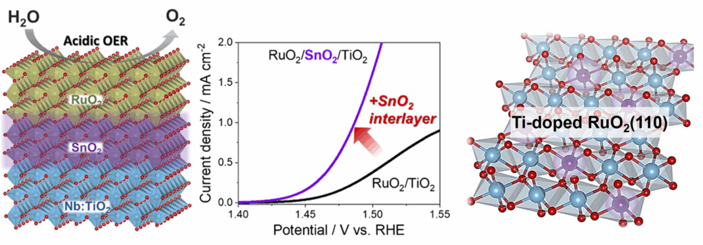 イリジウムやルテニウムの酸化物(IrO2, RuO2)は固体高分子型水電解(PEMWE, Proton Exchange Membrane Water Electrolysis)の酸素発生反応(OER, Oxygen Evolution Reaction)用の触媒として広く研究が進められています。しかしながら、その触媒活性や反応下での安定性に関する表面構造(結晶面)や異種酸化物担体との界面の影響、更には異種元素を添加した際の触媒活性向上の起源などが明らかになっていません。